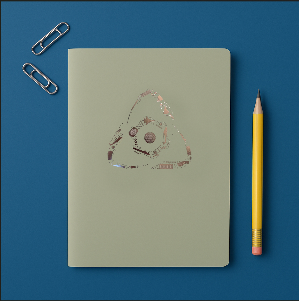 Скетчбук из дизайнерской бумаги с прошитым корешком и фольгированным тиснением на обложке. Листы внутреннего блока без печати, кремового цвета.