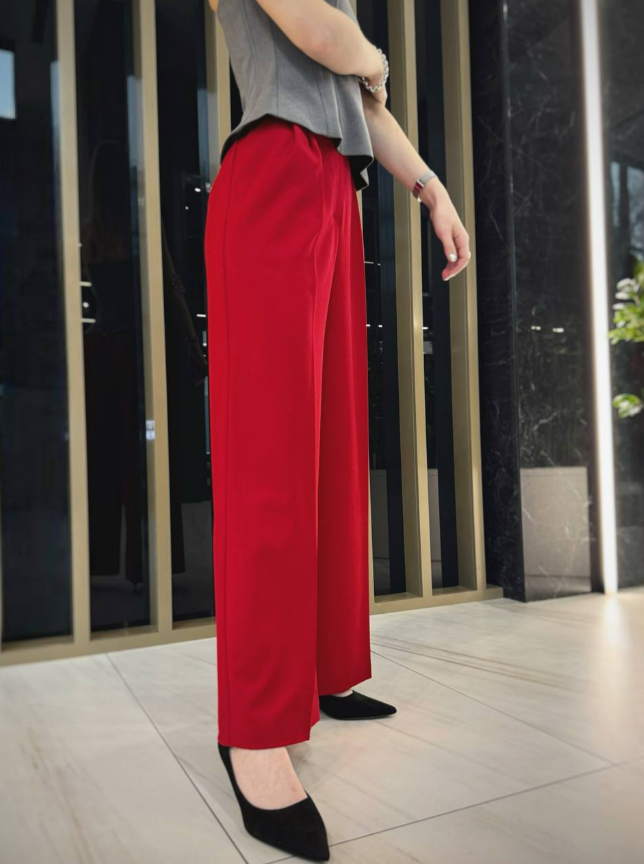 Струящиеся широкие брюки с защипами и поясом. Выполнены из ткани с мягким матовым отблеском и диагональным плетением. Два функциональных боковых кармана. Элегантный вариант для повседневного или делового гардероба.