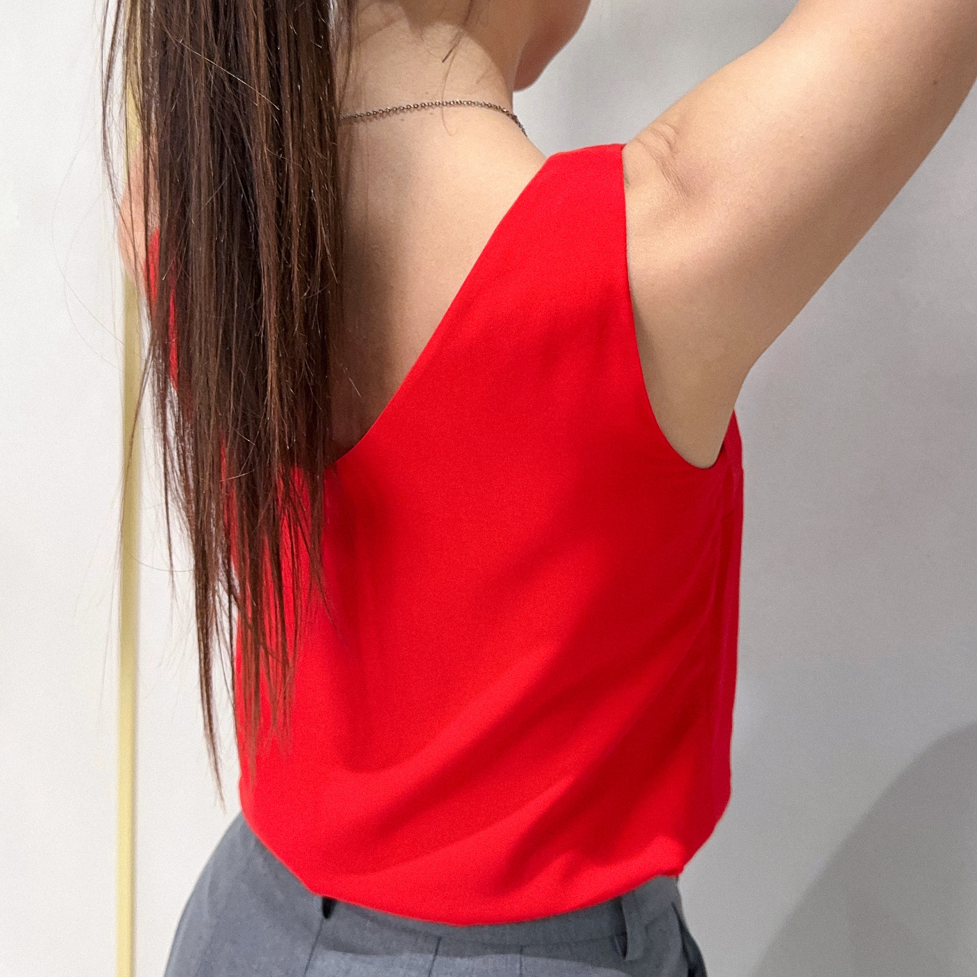 Базовый топ на комфортных широких бретелях с V-образным вырезом. Выполнен из приятной к телу и износостойкой вискозы.